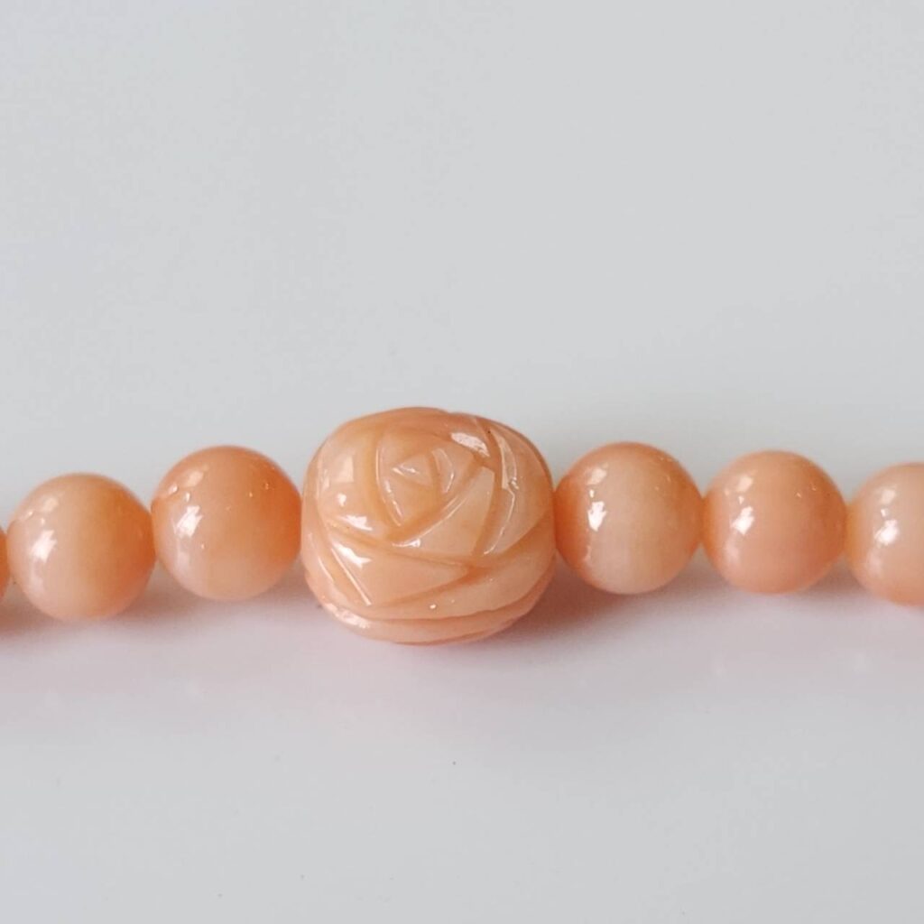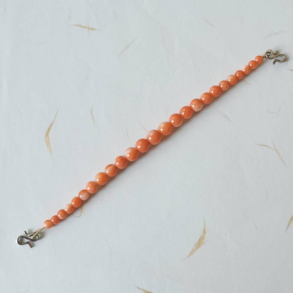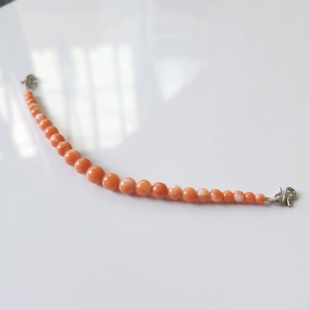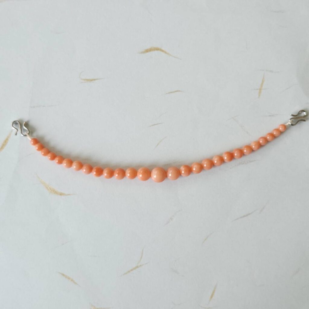 天然の宝石珊瑚で製作した羽織紐です。