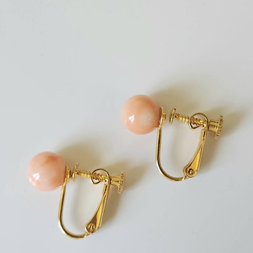 綺麗な深海珊瑚玉イヤリングのご紹介です。