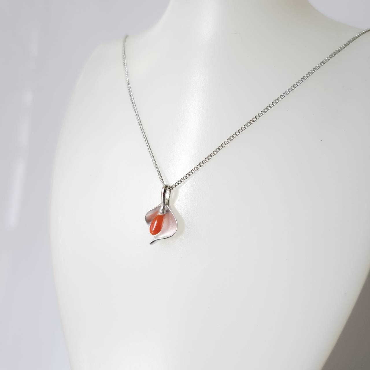 珊瑚の綺麗な赤をシルバーの金具が更に美しく引き立てているペンダントです。