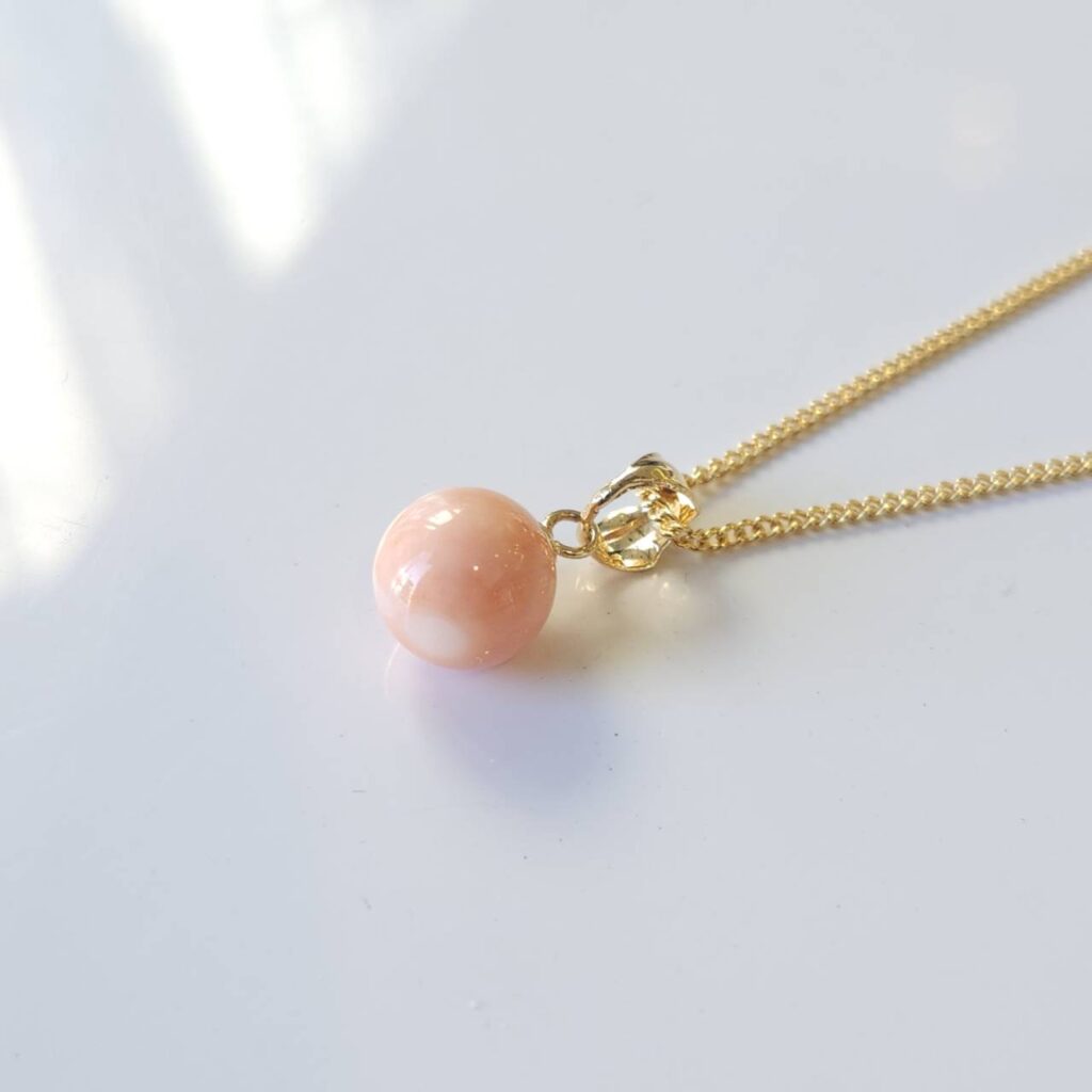 オールシーズンお使いいただきやすい深海珊瑚玉ペンダントのご紹介です。