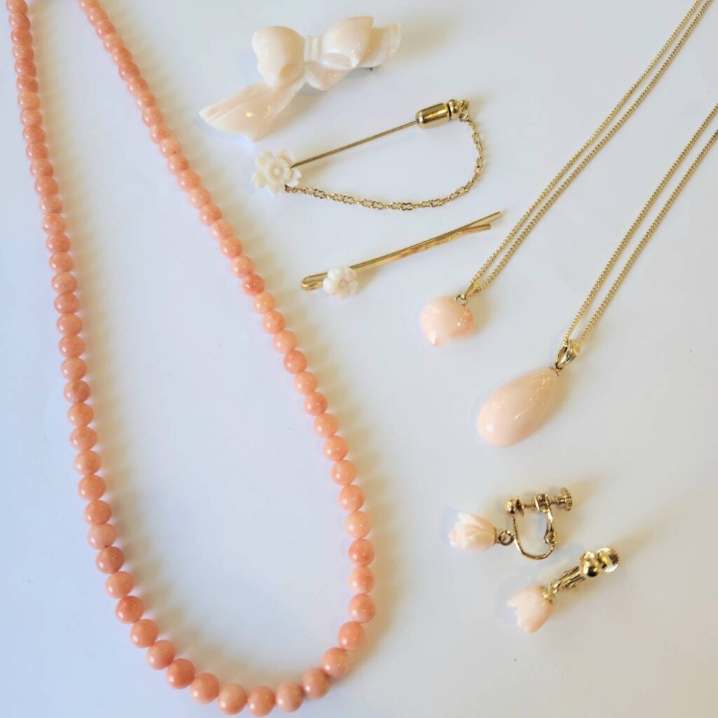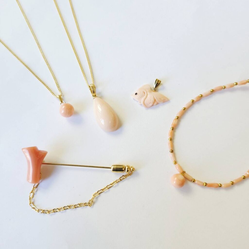 赤・桃色・白と様々な色合いがある宝石珊瑚。